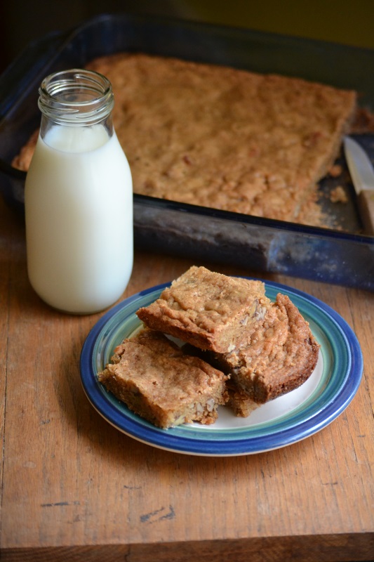 Cookie Bars with Milk 01 Published May 19, 2019 at 533 × 800 in Cookie Bars with Milk 01 chewy pecan bars with bottle of milk from www.ApronFreeCooking.com